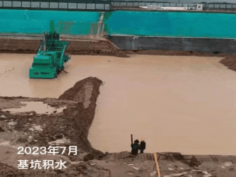 宋慶剛在檢查基坑排水情況。