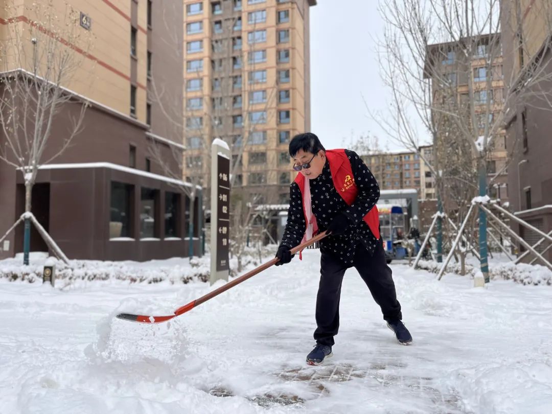 何套來在社區鏟雪。