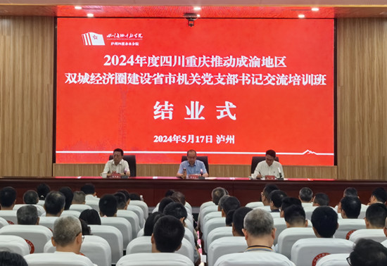 為深入學習貫徹習近平總書記關于推動成渝地區雙城經濟圈建設的重要講話精神,認真落實推動成渝地區雙城經濟圈建設重慶四川黨政聯席會議部署要求,進一步發揮機關黨建在推動成渝地區雙城經濟圈建設中的引領保障作用,近日,2024年度四川重慶推動成渝地區雙城經濟圈建設省市機關黨支部書記交流培訓班在瀘州市委黨校(長征干部學院四渡赤水分院)順利舉行。四川省委省直機關工委常務副書記、省委省直機關黨校校長黃傳龍出席結業式并講話,四川省委省直機關工委一級巡視員張平森作開班動員,瀘州市委常委、統戰部長、市總工會主席李堂兵致辭,重慶市委直屬機關工委副書記王軍主持開班式和結業式。來自四川省直機關、重慶市直機關、成都市直機關的黨支部書記及川渝毗鄰地區市(區、縣)機關工委負責同志130余人參加培訓。
