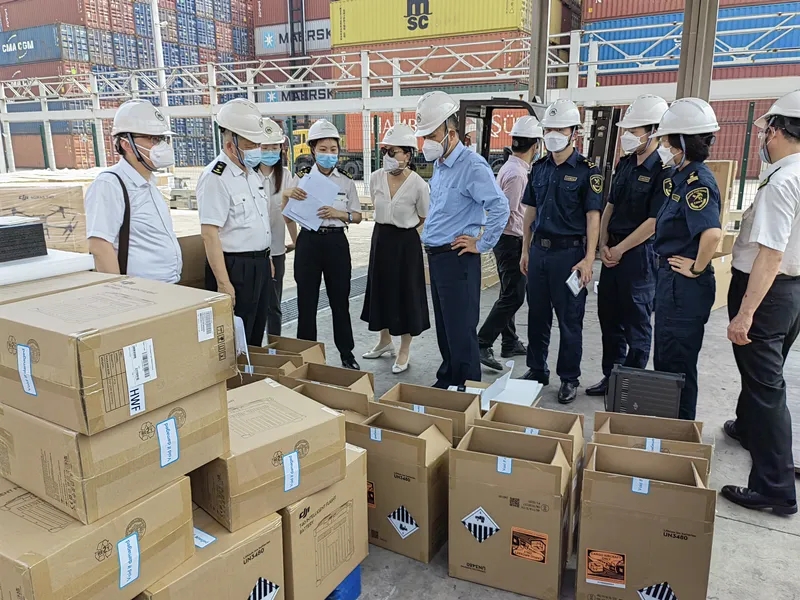商務部安全與管制局黨支部書記江前良同志帶隊赴海關一線開展執法工作。