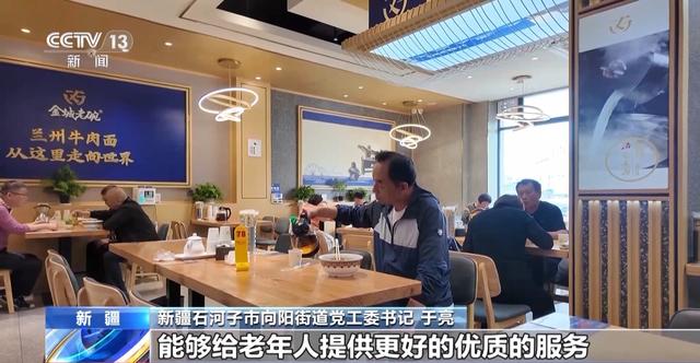 在新疆石河子市,在規劃建設老年食堂的基礎上,當地通過自主申報、嚴格篩選、征求居民意見等程序,優選餐飲企業、物業服務企業等為老年人提供助餐服務,“金城老碗”牛肉面館從2023年底成為轄區“長者助餐服務點”,老年人在這里就餐可享受3到4元的優惠。