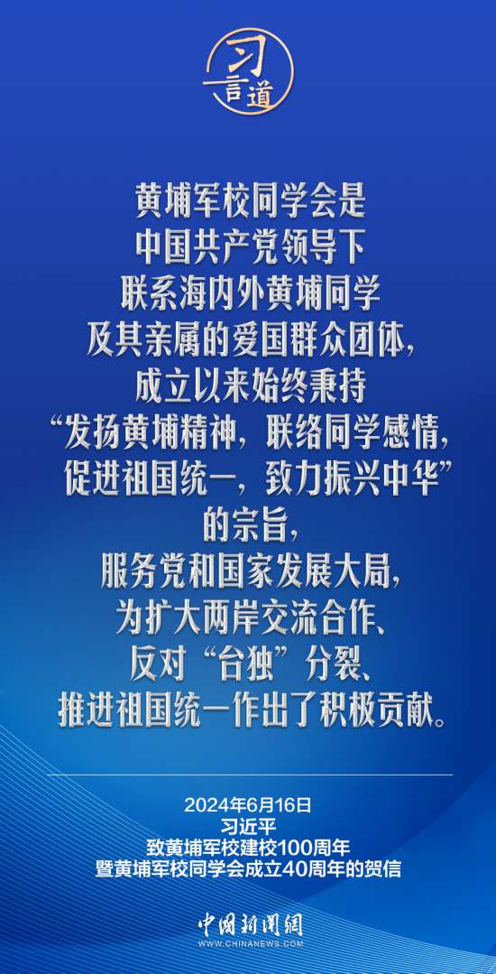 在黃埔軍校建校100周年暨黃埔軍校同學會成立40周年之際,中共中央總書記、國家主席、中央軍委主席習近平發來賀信,代表中共中央向黃埔軍校同學會表示熱烈祝賀,向廣大海內外黃埔同學及其親屬致以誠摯問候。習近平指出——
