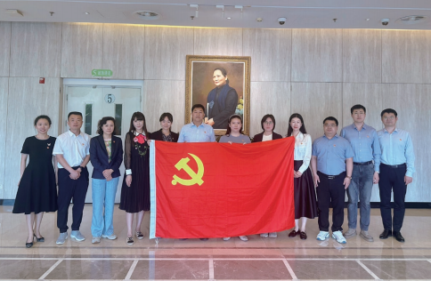 >> 辦公室(黨群工作部)黨支部在宋慶齡先生畫像下合影。