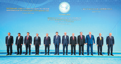 當地時間7月4日上午,國家主席習近平在阿斯塔納獨立宮出席上海合作組織成員國元首理事會第二十四次會議。這是習近平同上海合作組織成員國領導人集體合影。