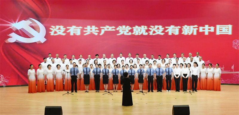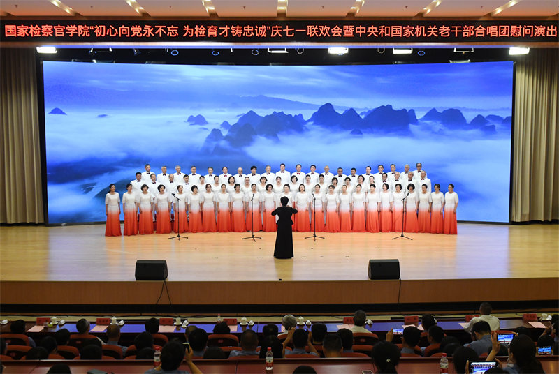 為慶祝中國共產黨成立103周年,中央和國家機關工委老干部活動中心于7月1日與國家檢察官學院共同舉辦“初心向黨永不忘 為檢育才鑄忠誠”慶七一聯歡會暨中央和國家機關老干部合唱團慰問演出活動,最高人民檢察院黨組成員、副檢察長宮鳴出席并講話。師生500余人在學院秉鑒持衡大講堂觀看演出。
