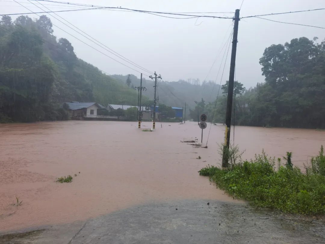 6月17日,懷化市芷江縣楠木坪鄉遇強降水,縣道被淹沒 拍攝:吳開群