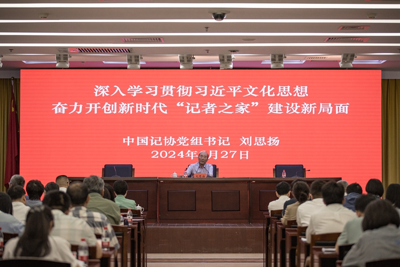 6月27日下午,中國記協召開全體黨員干部大會,黨組書記劉思揚圍繞“深入學習貫徹習近平文化思想 奮力開創新時代‘記者之家’建設新局面”講專題黨課。
