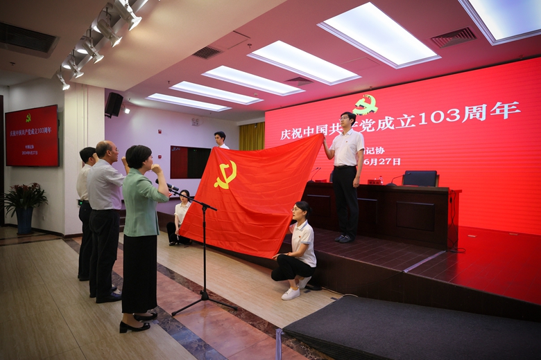 黨課開始前,中國記協開展了“七一”表彰活動,現場全體黨員重溫入黨誓詞,向3位老同志頒發“光榮在黨50年”紀念章,表彰12名中國記協“四好”黨員,3名“四好”黨員代表作現場交流發言,1名“四好”黨員代表作書面發言。中國記協黨組成員、書記處書記田玉紅宣讀“四好”黨員表彰決定,黨組成員、書記處書記吳旭主持活動。中國記協機關各部室、直屬事業單位全體黨員干部,“光榮在黨50年”老同志、離退休老干部代表,在京主管社團黨支部負責人參加。