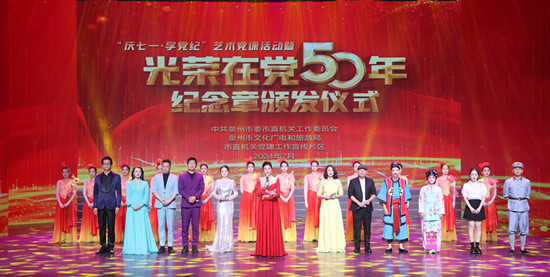 日前,泉州市直機關工委、泉州市文化廣電和旅游局等單位聯合舉辦“慶七一·學黨紀”藝術黨課活動暨“光榮在黨50年”紀念章頒發儀式。