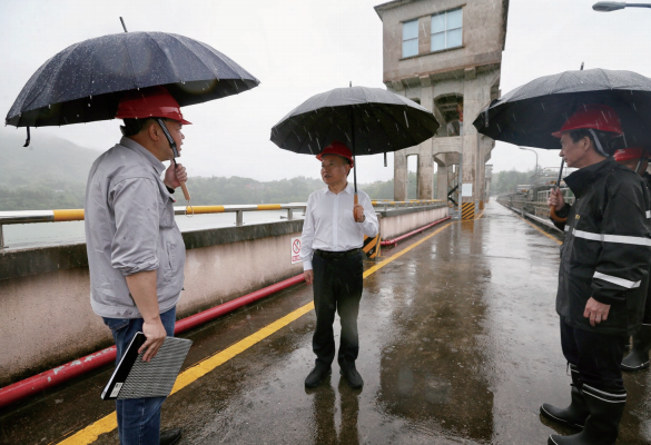 >> 2024年4月25日,作者(中)在廣東省河源市龍川縣調研楓樹壩水庫。