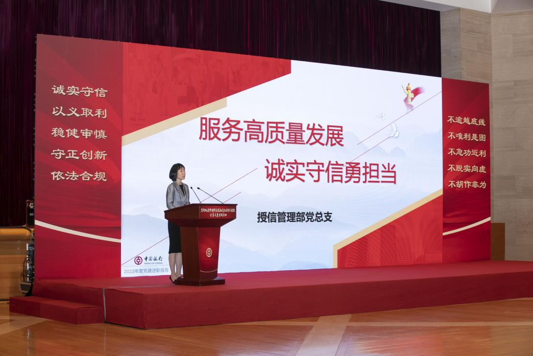 授信管理部黨總支以支部建設為切入點,圍繞如何在授信管理中更好踐行“誠實守信、不逾越底線”、扎實做好“綠色金融”這篇大文章,進行了交流展示。