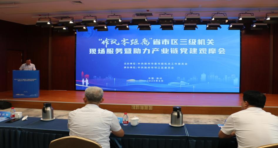 8月9日下午,揚州市委市級機關工委與邗江區委聯合開展“作風零距離”省市區三級機關現場服務暨助力產業鏈黨建現場觀摩會,省委省級機關工委副書記柴家鴻出席并講話,市委常委、組織部部長、秘書長焦慶標出席并致辭。