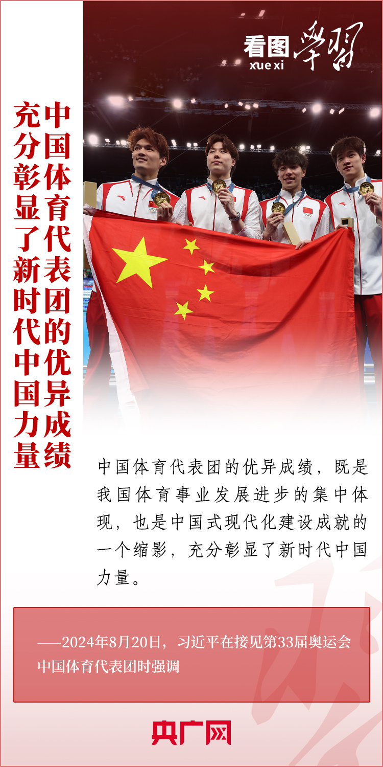 “祖國和人民為你們驕傲,為你們點贊?!?月20日,習近平總書記在人民大會堂接見第33屆奧運會中國體育代表團并發表重要講話??倳浉叨瓤隙ㄖ袊w育代表團取得的優異成績,贊揚他們充分彰顯了新時代中國力量、生動詮釋了新時代中國精神、充分展現了新時代中國形象,勉勵大家戒驕戒躁、再接再厲,為建設體育強國再立新功。一起來學習!