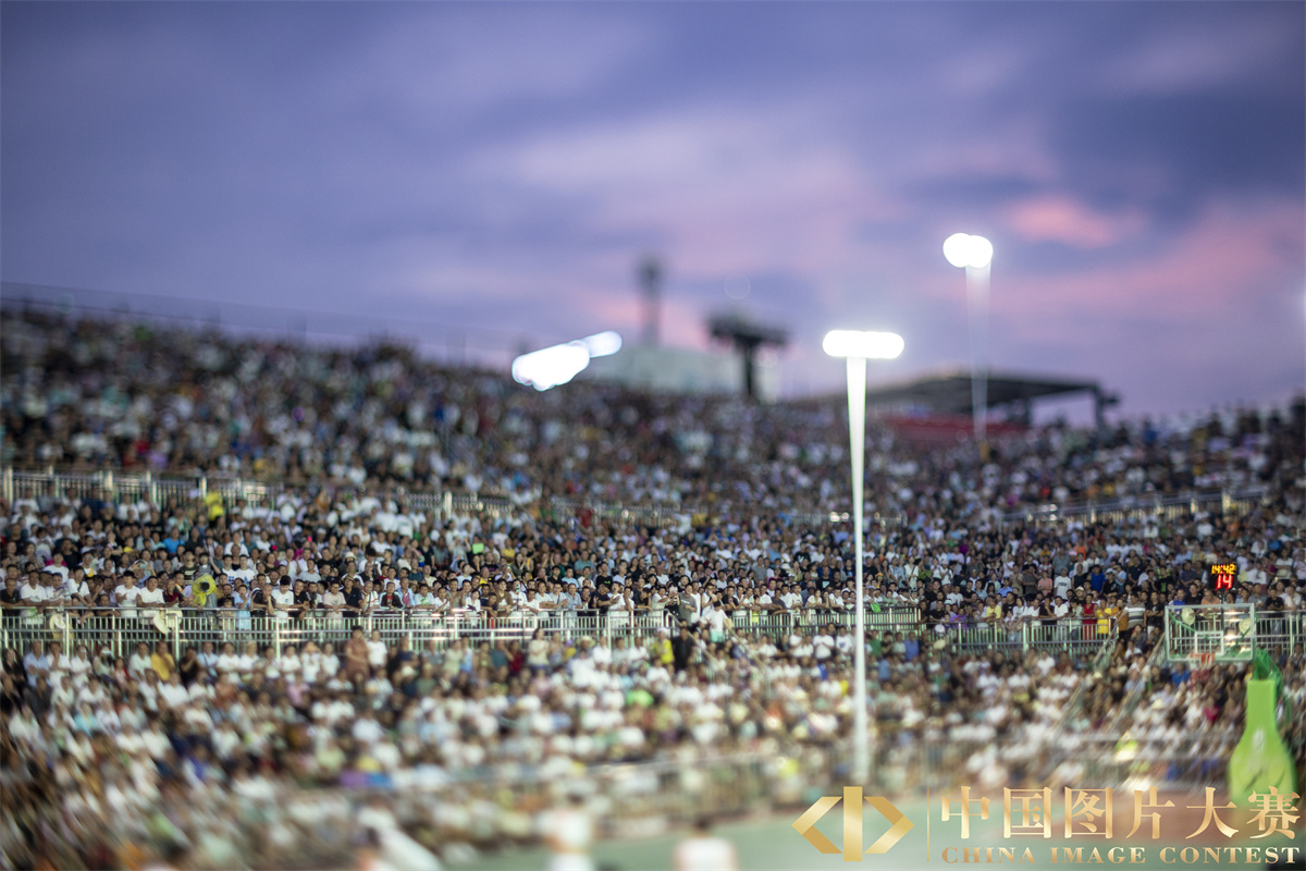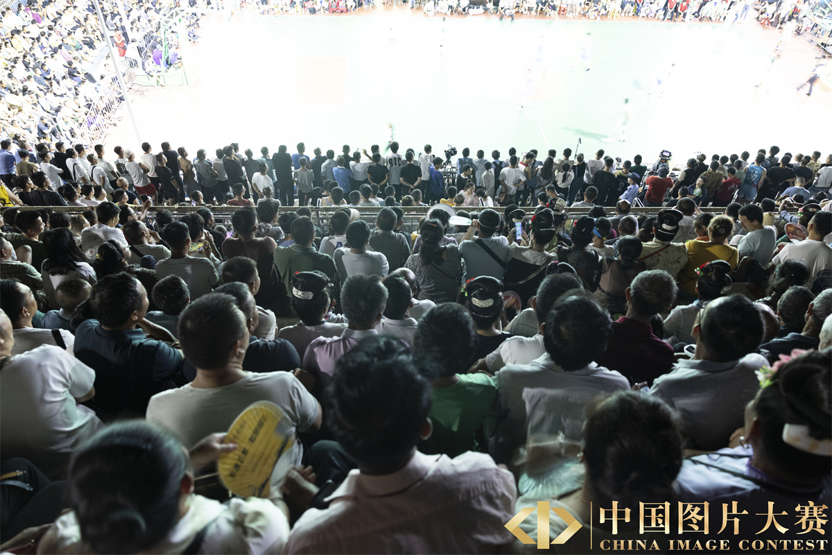 圖9:2023年7月26日,在貴州省黔東南苗族侗族自治州臺江縣臺盤村舉行的村BA比賽中,觀眾觀看比賽。