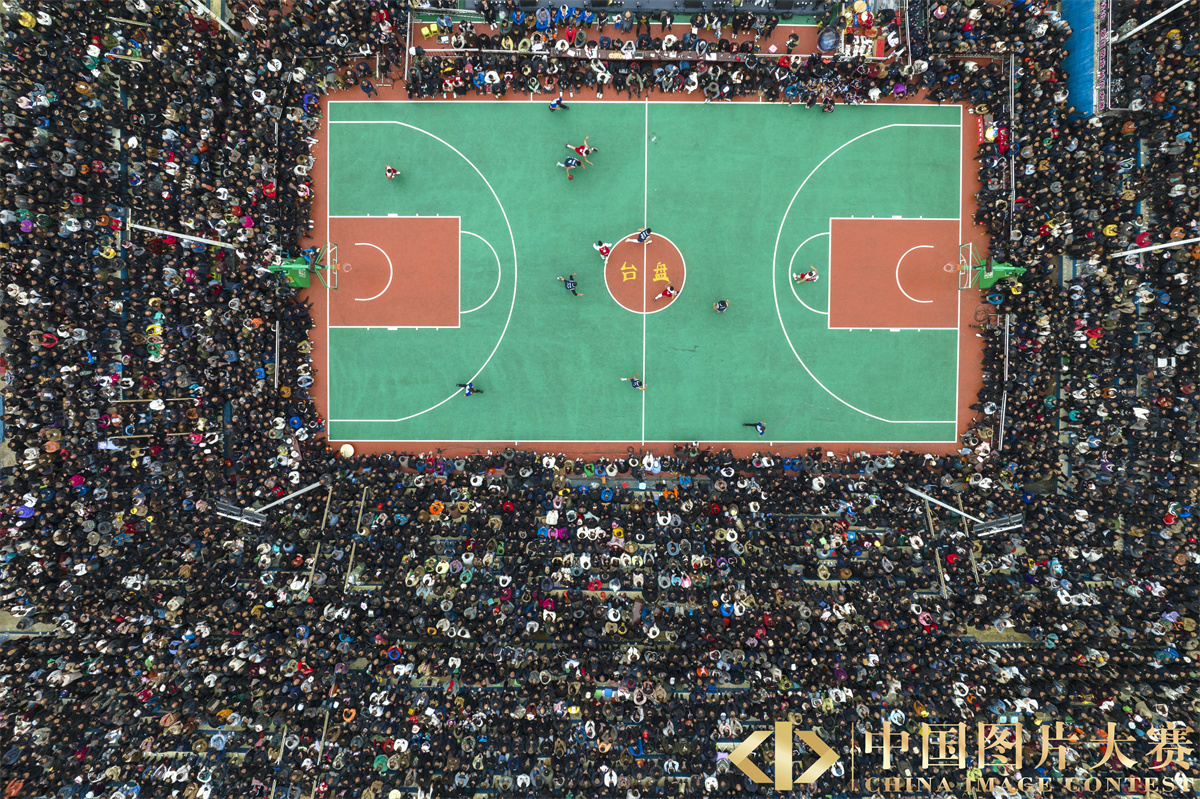 圖8:2023年3月27日,在貴州省黔東南苗族侗族自治州臺江縣臺盤村舉行的村BA女子籃球賽中,運動員奮力比拼。女子籃球賽又被稱為嬢嬢打球,只要不把籃球帶回家,怎么打都行。