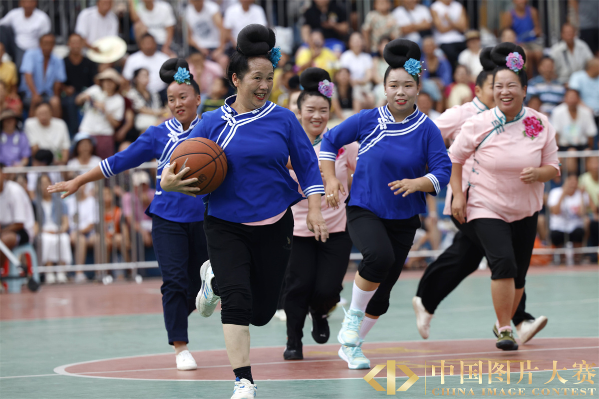 圖集說明:村BA是由貴州省黔東南苗族侗族自治州臺江縣臺盤村“六月六”吃新節籃球賽發展而來。這里的籃球賽可以追溯到1936年,每年“六月六”吃新節,村民在農忙過后,會為預祝糧食豐收舉辦各種活動,籃球賽是其中最受歡迎的一項。2022年夏天,由于自媒體報道,意外火爆全網。村BA不僅帶動了當地土特產的銷售,更促進了旅游產業發展。