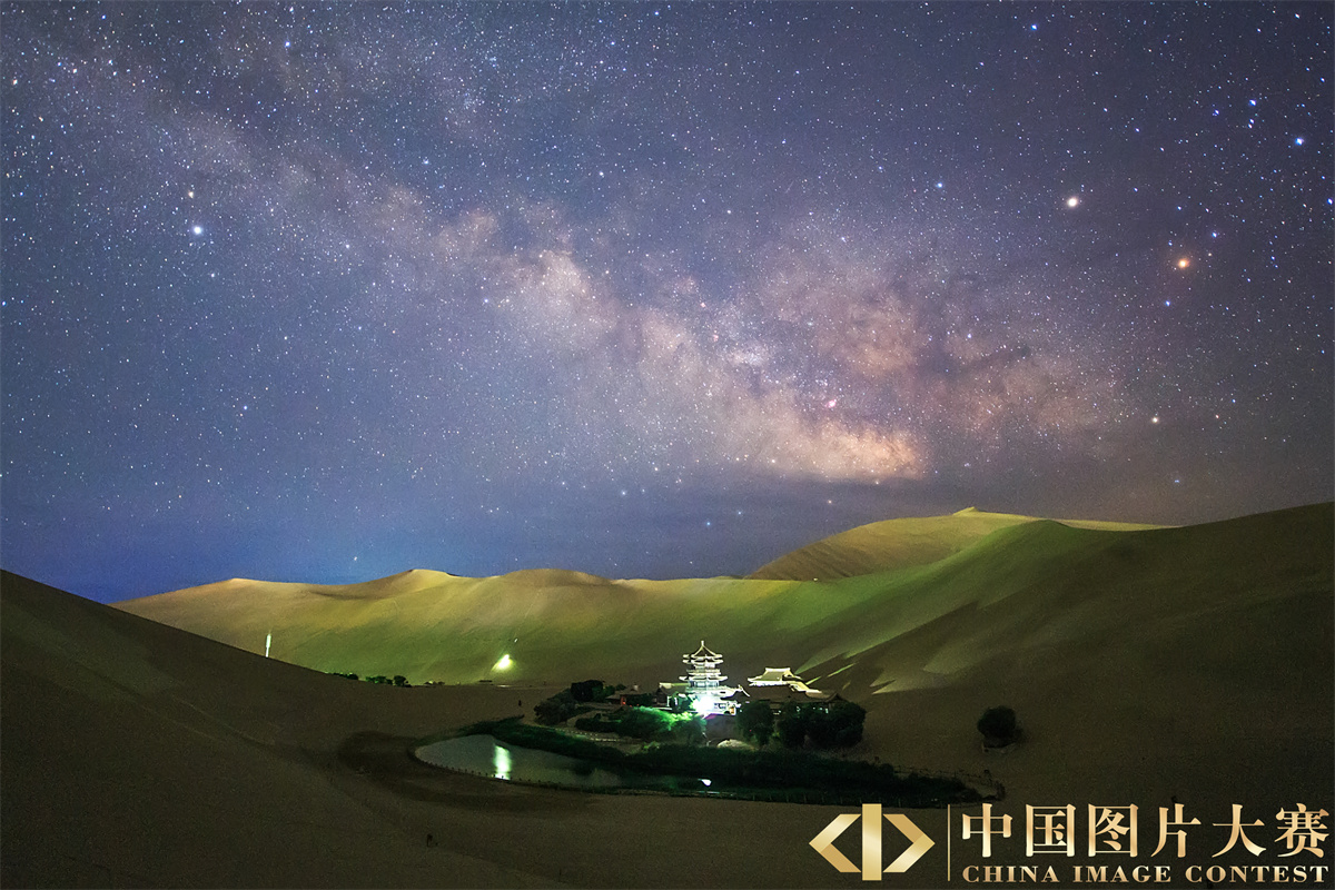 圖1:2016年6月8日在中國甘肅省敦煌市月牙泉拍攝的星空。