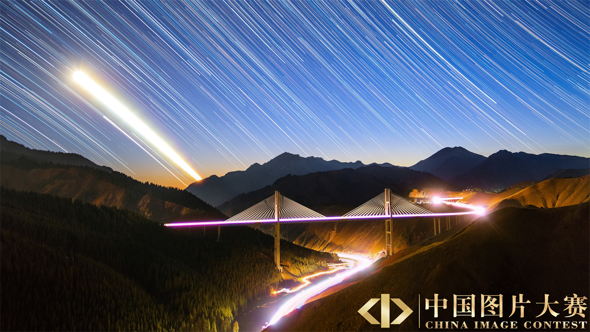 圖2:2018年9月24日在中國新疆果子溝大橋拍攝的星空。