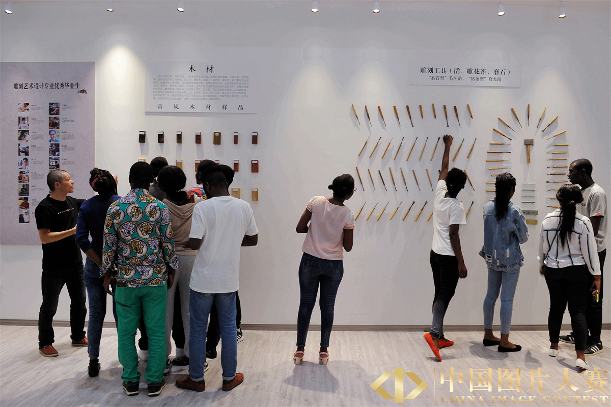 圖3:2019年9月20日,非洲留學生走進魯班工坊上東陽木雕實訓課。