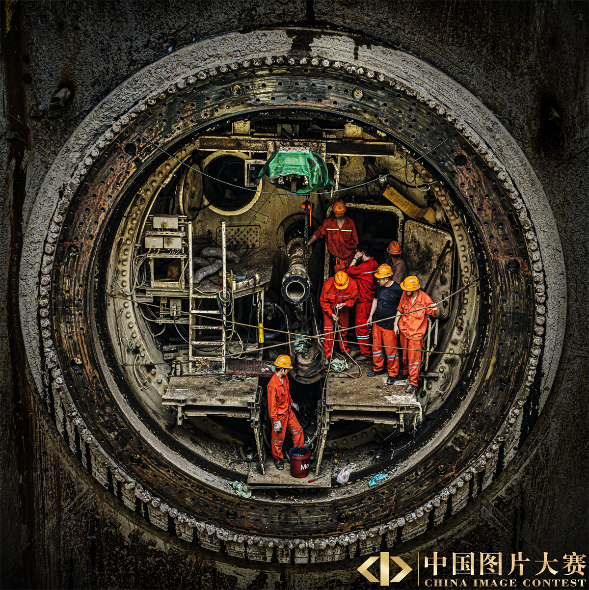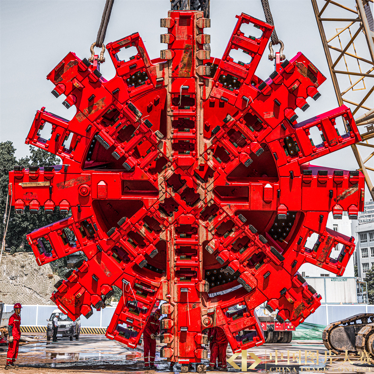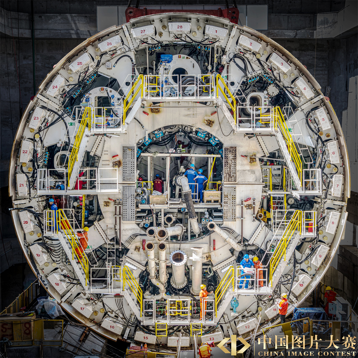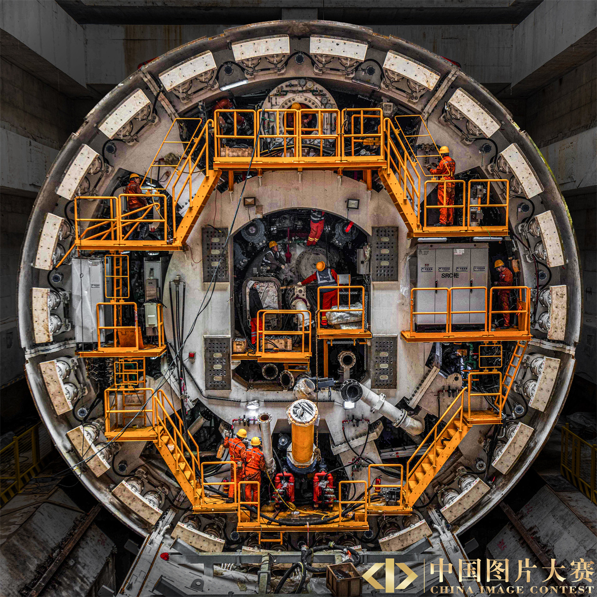 圖5:圖為2022年3月27日在湖北省武漢市軌道交通12號線國博過江通道拍攝的“江城先鋒號”大直徑泥水平衡盾構機的主驅動系統。