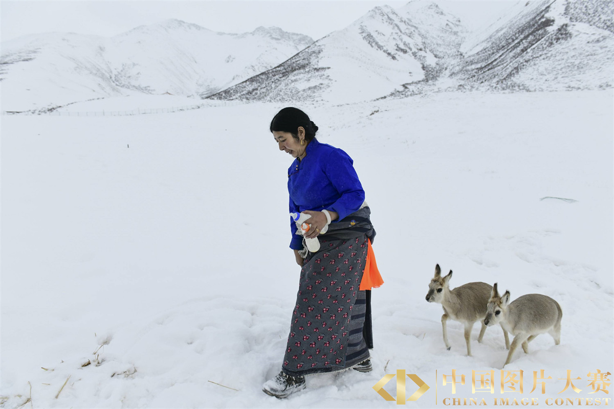 圖8:2018年11月29日,青海省海西州都蘭縣溝大雪封山,德措吉照料救助的藏原羚。