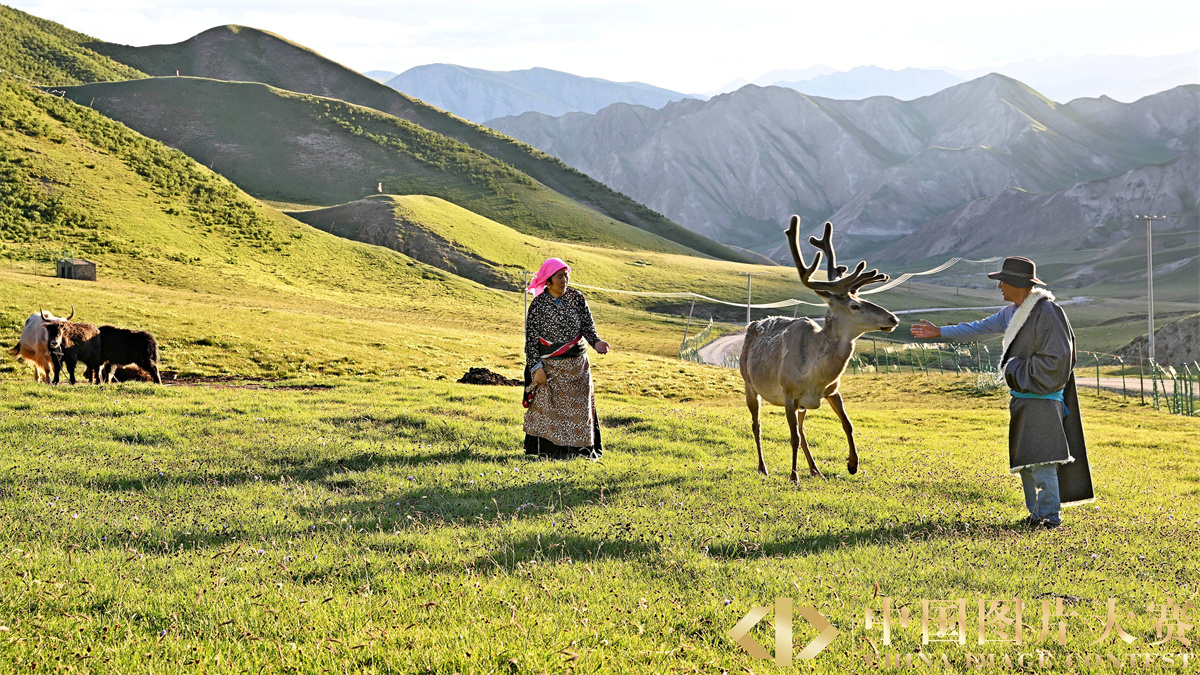 圖9:2023年7月30日,在青海省海西州都蘭縣溝,仁增多杰夫婦與十年前救助的馬鹿重聚。
