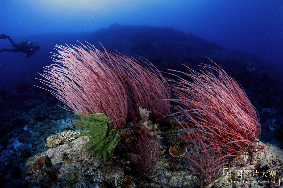 圖集說明:有人說,不到南海,不知道海洋的博大;不到西沙,不知道大海的神奇。水下一座座生機盎然的珊瑚礁五彩繽紛、千姿百態,形成神奇迷人的水下妙景。