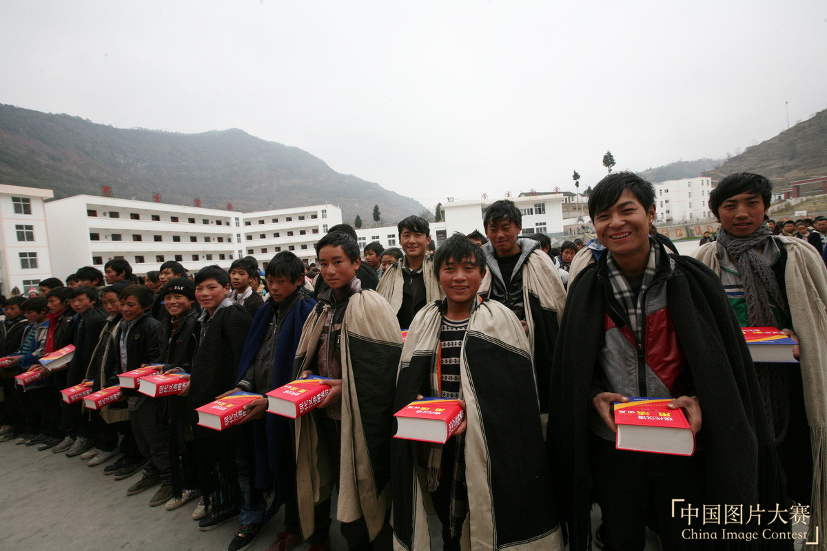 圖4:2011年12月27日,美姑縣俄普中學的孩子們免費獲得工具書。