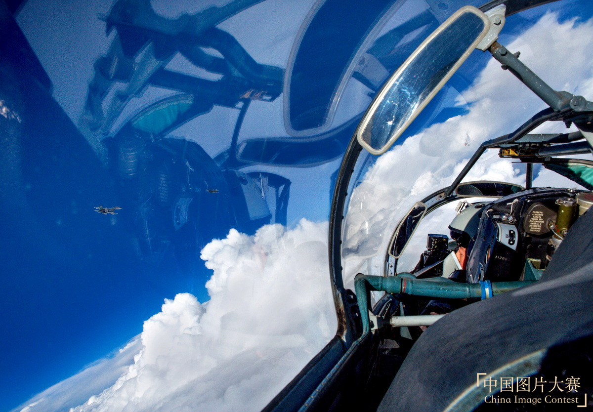 圖2:“金頭盔”飛行員劉曉鵬駕機升空與戰友在空中編隊。