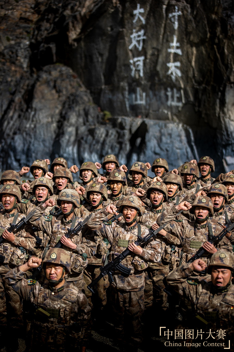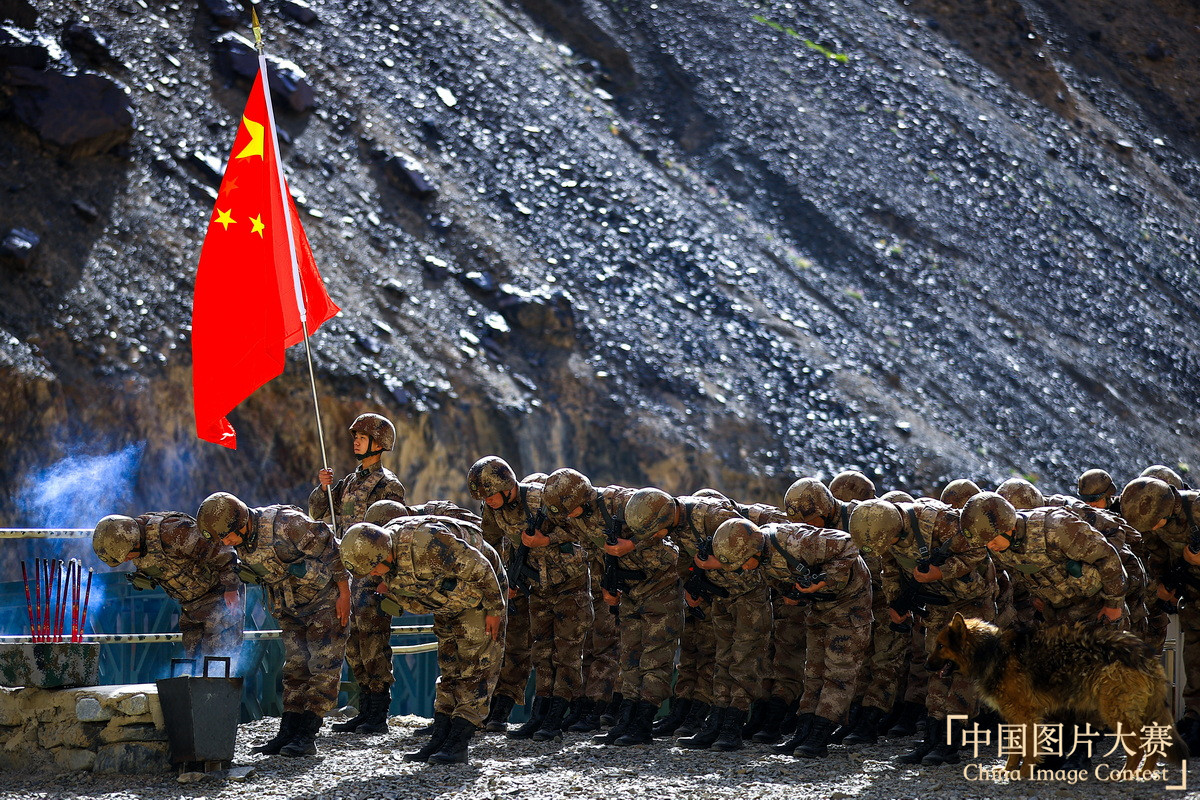 圖集說明:2021年9月25日,新疆軍區某合成團官兵在“大好河山、寸土不讓”標語前,開展多種活動,舉行祭奠儀式,緬懷犧牲的戰友。