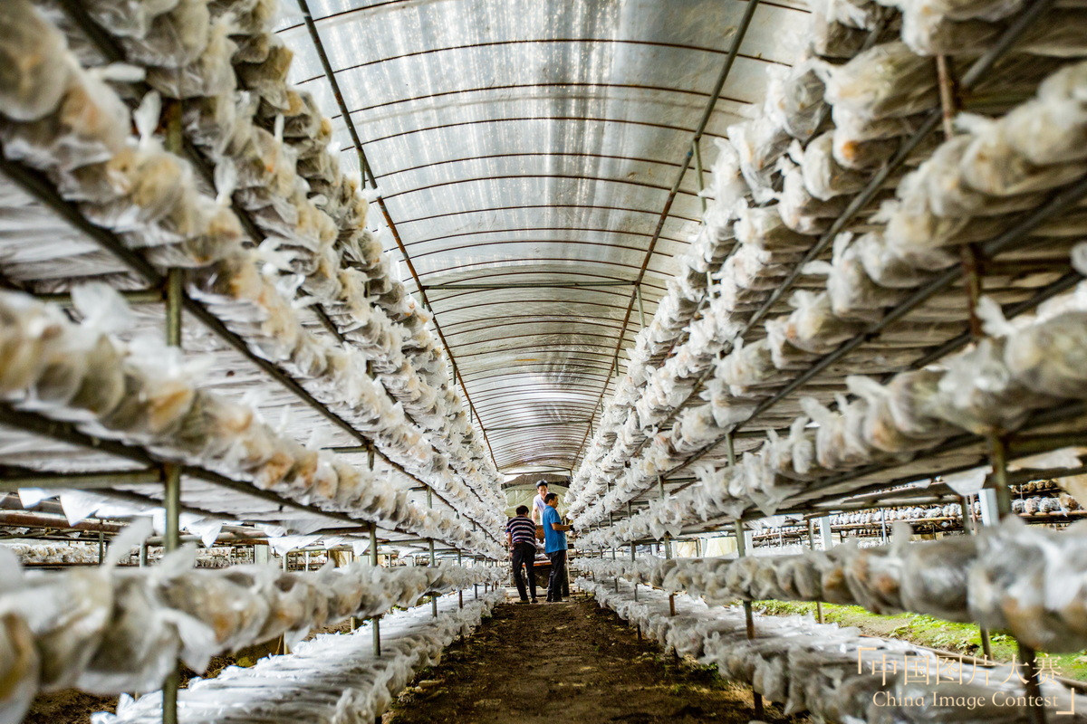 圖集說明:2018年,湖北省十堰市竹山縣深河鄉雙灣村建成占地110畝3000千瓦光伏電站項目,棚頂發電,棚內種植食用菌,年產菌棒200萬袋。近年,竹山縣多措并舉推進食用菌產業,建成百萬袋以上食用菌基地5個、50萬袋以上食用菌基地14個,食用菌產業覆蓋全縣17個鄉鎮,成為農村脫貧出列、農民脫貧增收主導產業之一。