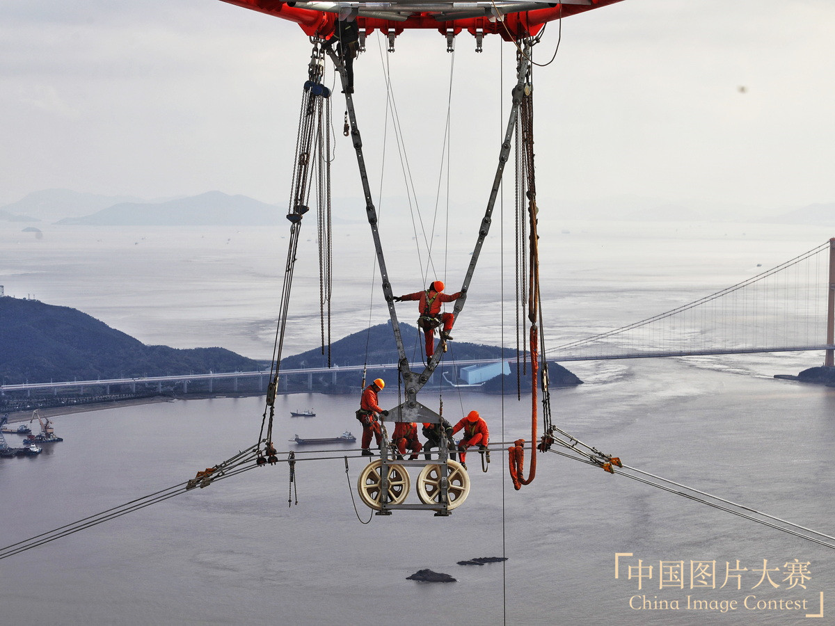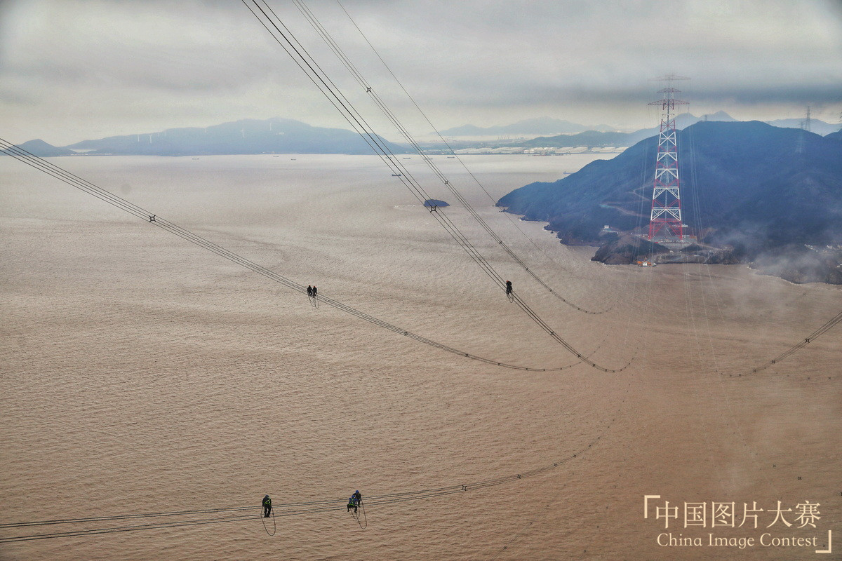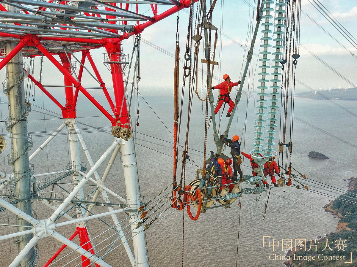 圖集說明:浙江省舟山500千伏聯網輸變電工程輸電線路全長50.155千米,其中海底電纜16.8千米,新建架空線路全長33.355千米,創下了建設世界最高輸電高塔、敷設世界首條500千伏交聯聚乙烯海纜等14項世界紀錄。