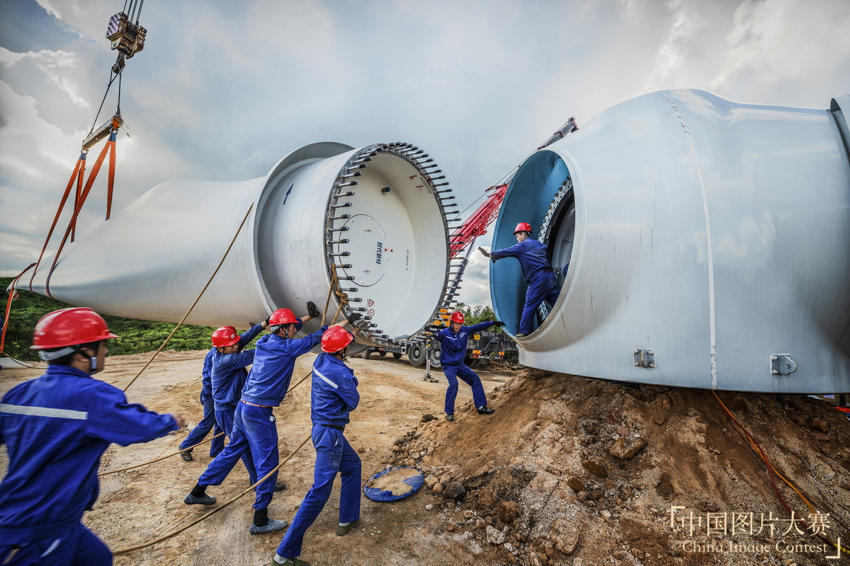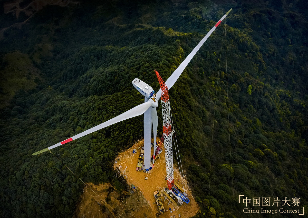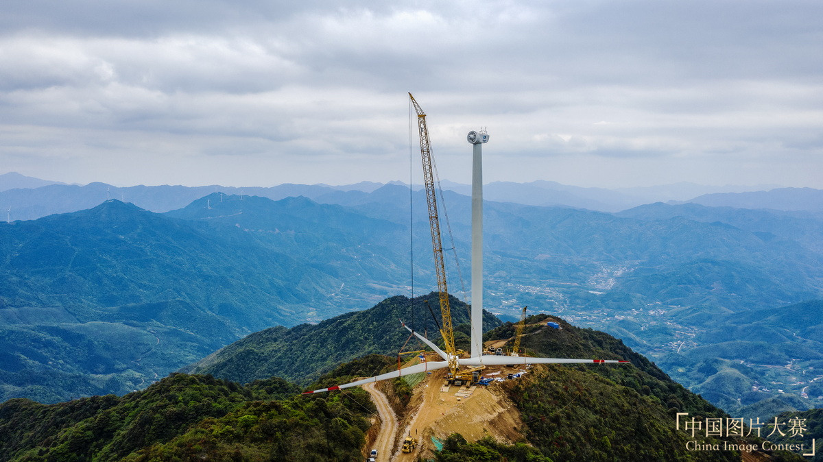 圖集說明:2018年6月6日,華電福建漳平紅尖山48.4兆瓦風電場風機安裝工程正式開工。全體參建員工克服南方山區寒風凜冽、霧氣彌漫、陰冷潮濕的不利條件,風餐露宿,日夜奮戰在海拔1800多米的高山之巔。