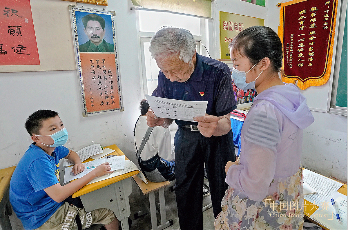 圖集說明:全國道德模范、全國優秀共產黨員、安徽省馬鞍山市和縣烏江鎮卜陳村退休教師葉連平,自掏腰包辦“未成年人之家”,20年不收一分錢,義務輔導留守兒童。
