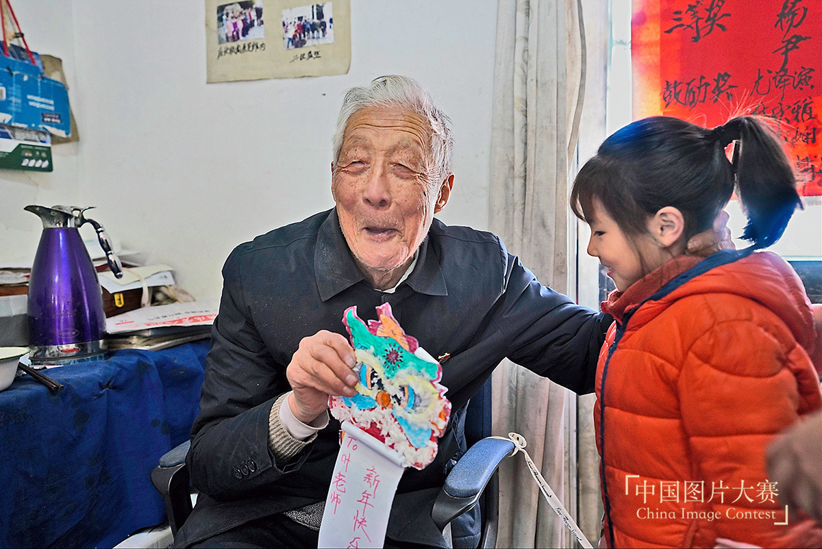 圖6:2020年春節前夕,尤夢瑤(右)代表同學和支教老師向葉連平送上祝福。