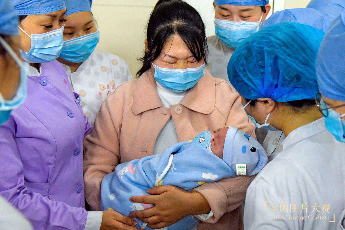 圖3:2020年3月22日上午,在中部戰區總醫院,新冠肺炎治愈出院的李女士接寶寶回家。1月27日,妊娠不滿35周的李女士被確診為新冠肺炎患者,經救治,成功分娩,寶寶未感染病毒。