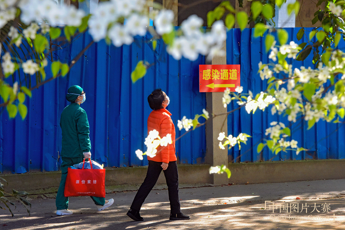 圖5:2020年3月18日,在中部戰區總醫院,一名出院的新冠肺炎治愈者走出病房,沐浴春光。