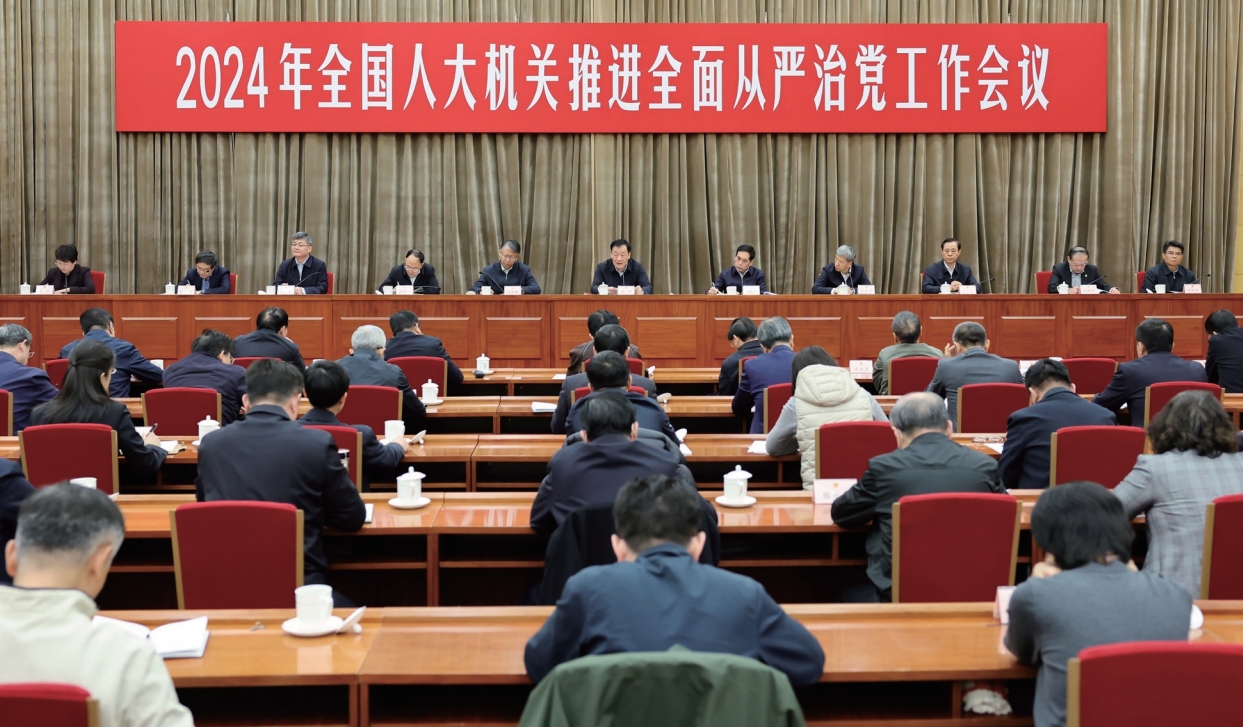 >> 2024年1月22日,2024年全國人大機關推進全面從嚴治黨工作會議召開。