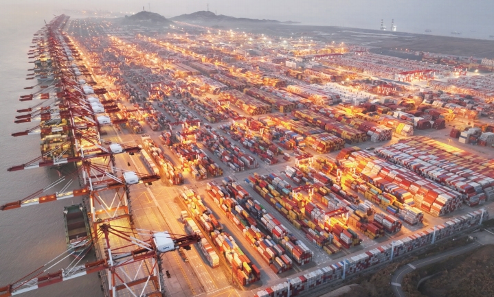 >> 改革開放以來,中國發展日新月異,產業結構不斷升級,經濟建設取得了舉世矚目的成就。圖為2023年1月7日,上海港洋山深水港區集裝箱碼頭燈火通明,碼頭作業運轉繁忙有序。