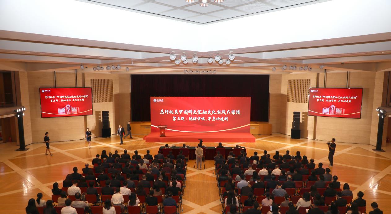 日前,中國銀行總行機關“中國特色金融文化實踐大家談”系列活動第三期“穩健審慎”篇舉辦。黨委班子和管理層成員出席,總行機關各黨支部書記、宣傳委員、黨員代表共300余人參加。