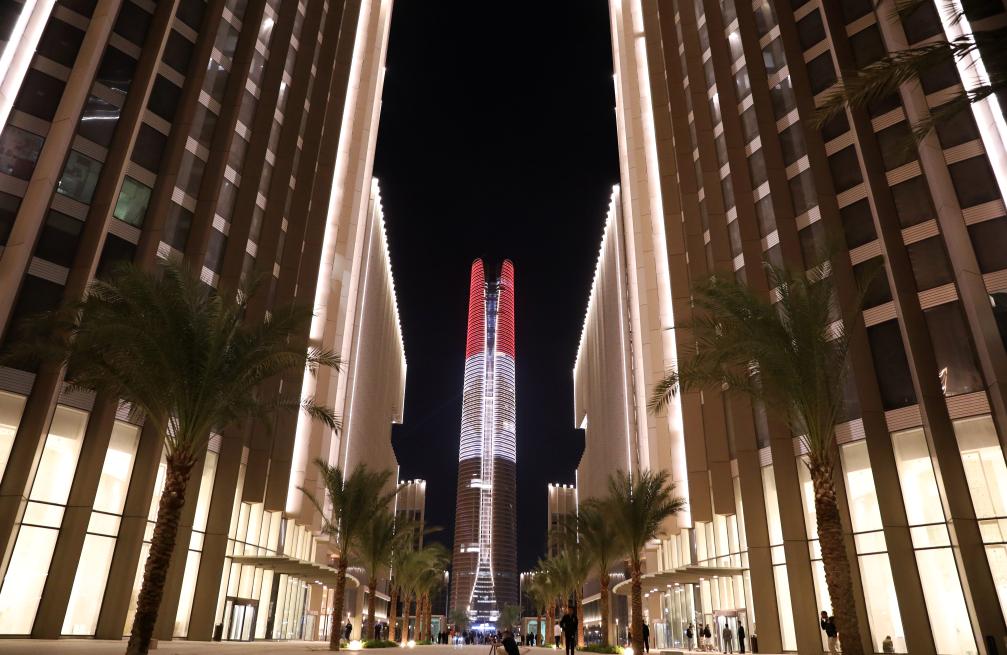 這是2024年10月21日拍攝的埃及新行政首都中央商務區夜景。新華社記者 王東震 攝