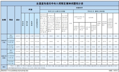 10月28日,中央紀委國家監委公布了2024年9月全國查處違反中央八項規定精神問題匯總情況。當月,全國共查處違反中央八項規定精神問題22313起,批評教育和處理31614人,其中黨紀政務處分22475人,這是連續第133個月公布月報數據。