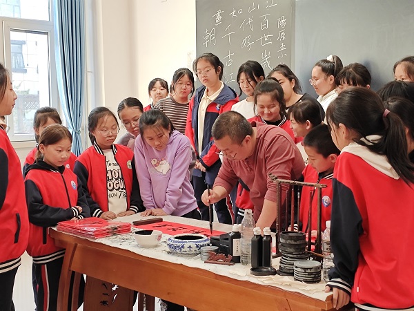 精心設計拓展教學內容,促進多維育人師生共長。各支教幫扶點結合隊員專業特長,有效整合資源,豐富教學設計,五育并舉抓實素質教育,促進學生綜合素質全面發展。陽原支教幫扶隊在教學中引入少兒編程、口才訓練、書法繪畫等素質教育課程,創設互動式、沉浸式教學情境,推動學生集體一起練、小組特色學及個人興趣學有機結合,激勵學生在各類文體活動中探索興趣、展現自我。北冶支教幫扶隊積極探索美育工作方法,通過組織排演紅色小調和山區民歌、定期邀請“名師進課堂”講座等方式,寓教于樂、潤物無聲,助推學生開拓思維視野、滋養美好心靈。