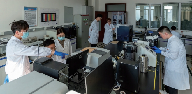 >> 2024年5月,中國科學院新疆理化技術研究所光電功能晶體材料創新團隊成員在實驗室做研究。
