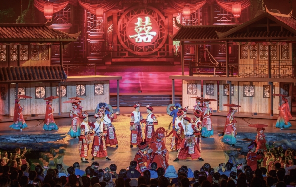 >> 恩施土家族苗族自治州騰龍洞景區民族歌舞秀《夷水利川》深受游客喜愛。