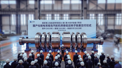 >> 2023年10月13日,國機重裝國產化1000兆瓦及以上核電常規島汽輪機焊接低壓轉子實現批量交付。