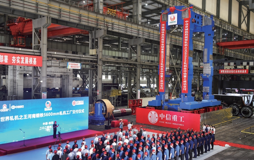 >> 中信集團實施實業“星鏈”工程,推進傳統產業升級、新興產業壯大、未來產業培育,加快培育新質生產力。圖為2024年8月23日,中信重工制造的“世界軋機之王”5600毫米寬厚板粗軋機牌坊交付。