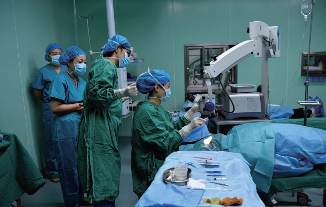 >> 2022年7月27日,在青海省海南藏族自治州人民醫院,來自北京同仁醫院的專家為患者進行手術。