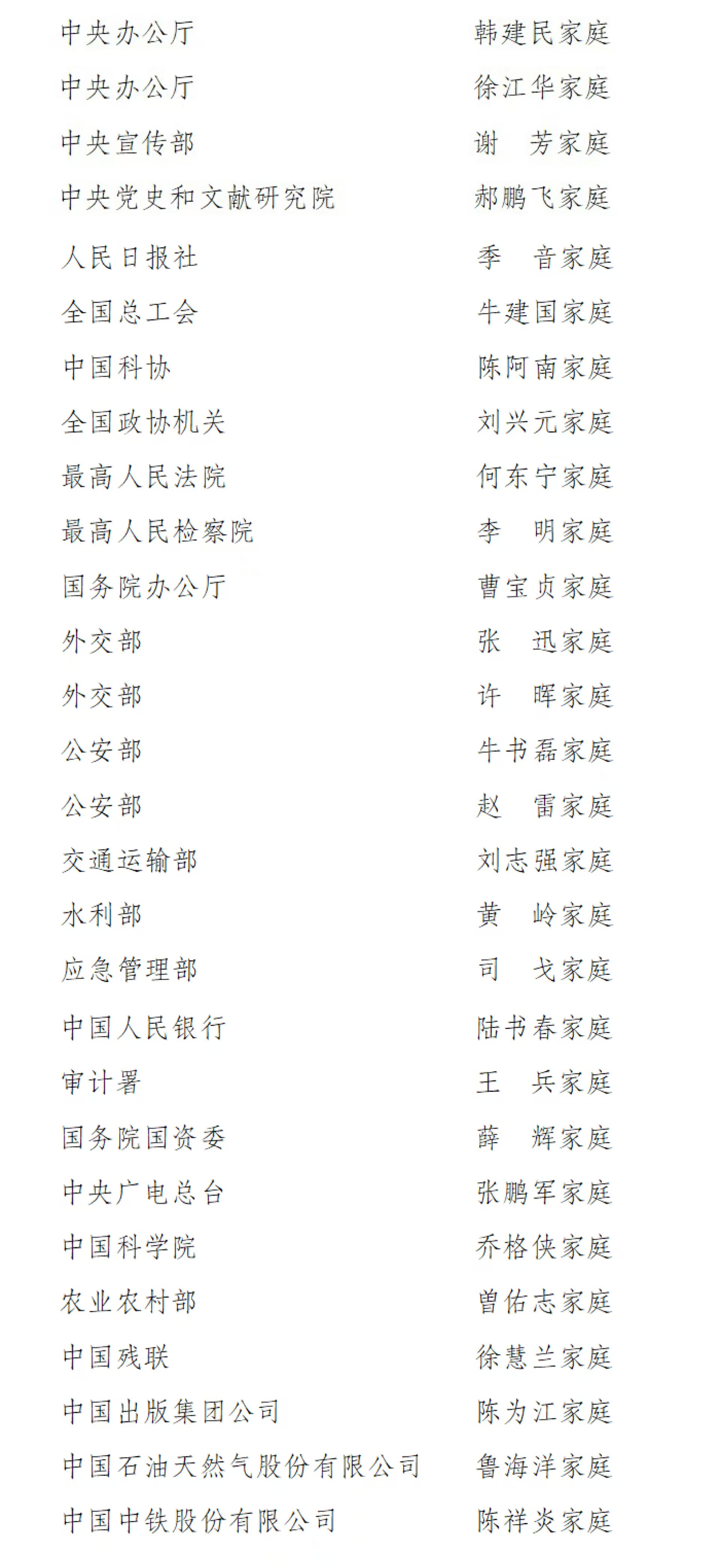 根據《關于做好第三屆全國文明家庭推薦和往屆全國文明家庭復查工作的通知》(中機關婦工發〔2024〕7號),中央和國家機關婦工委對中央和國家機關獲得第一、第二屆全國文明家庭認定命名的家庭進行了復查確認,擬保留中央辦公廳韓建民家庭、徐江華家庭等28個家庭榮譽稱號?,F就復查結果公示如下,公示時間為2024年12月17日至12月23日。