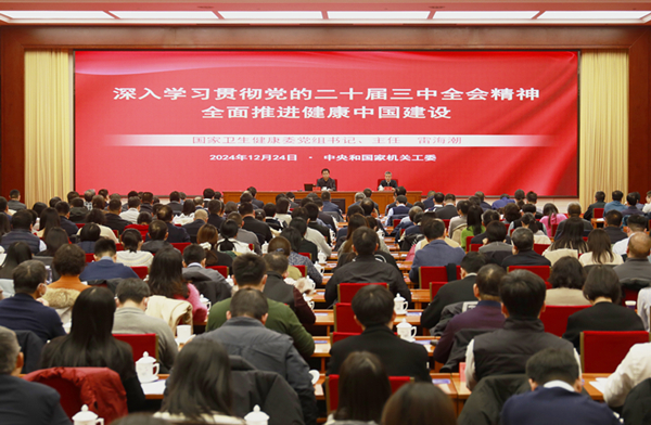 12月24日,中央和國家機關學習貫徹黨的二十屆三中全會精神輔導報告會在京舉辦。中央宣講團成員,國家衛生健康委黨組書記、主任雷海潮作輔導報告。中央和國家機關工委副書記燕軍主持報告會。